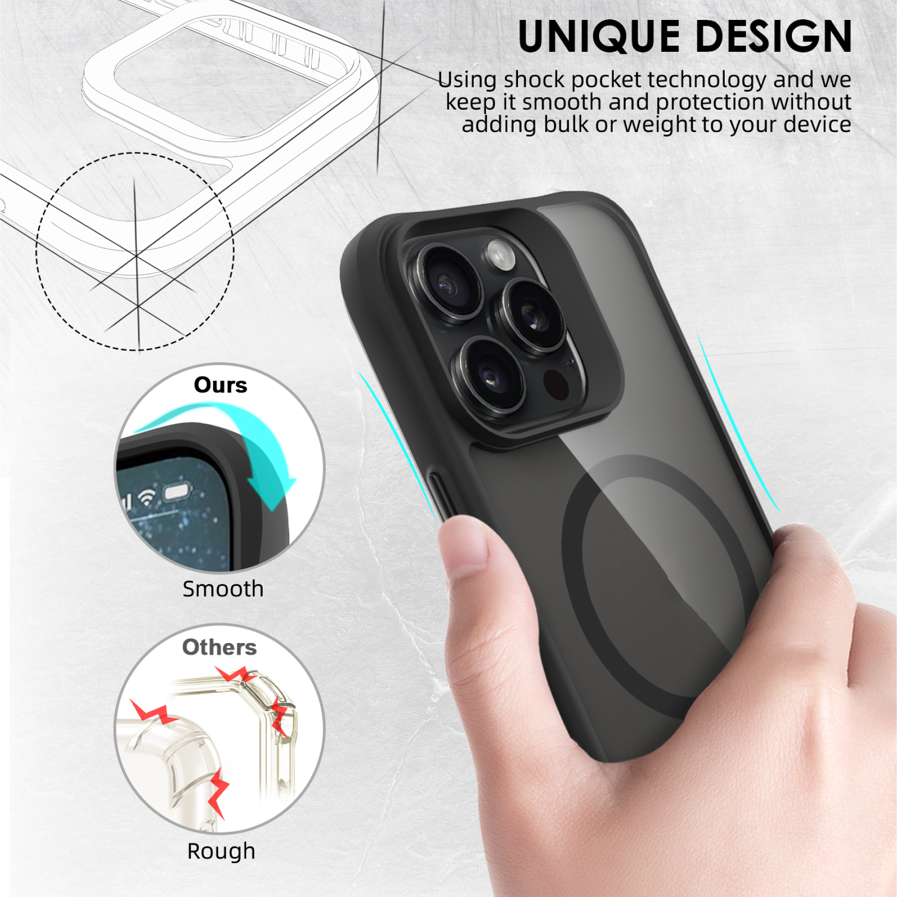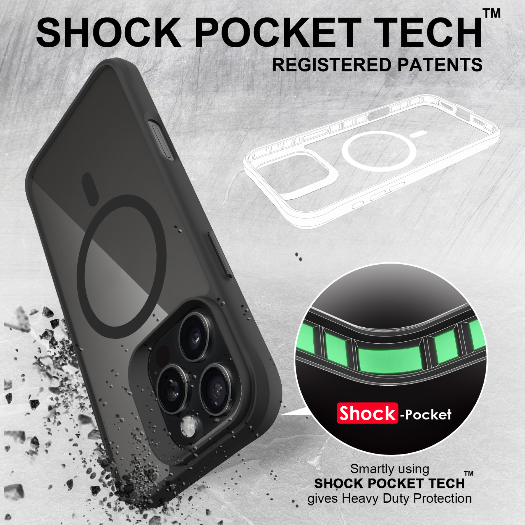 Safe Monster Antimicrobial Design: Slim Fit Impact Design Protect: Military Drop Standard Durability: Engineered Materials